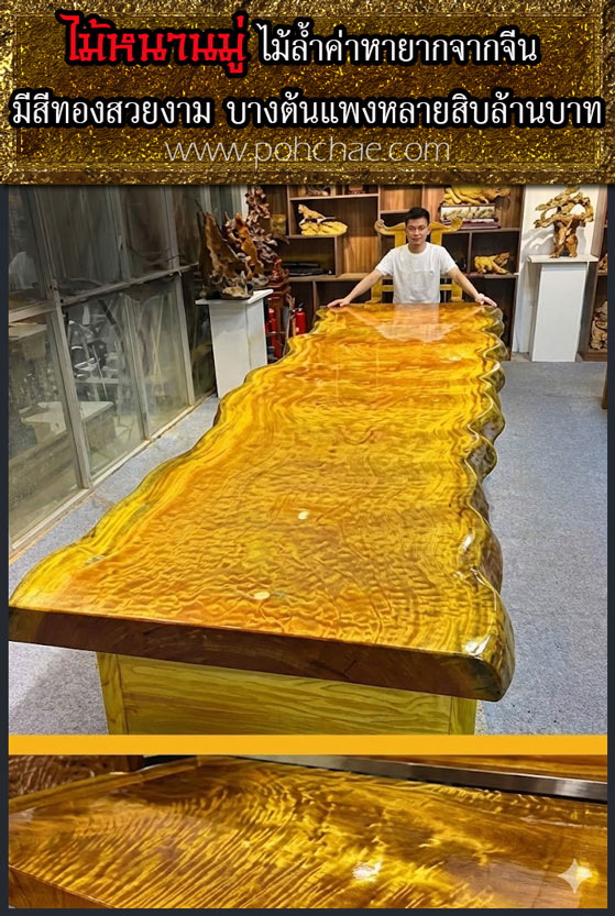 - สีทองอร่าม: มีลายเส้นสีทองแวววาว (Jinshi Nanmu) ทำให้มีมูลค่าสูงยิ่งขึ้น.