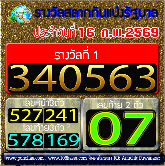 ตรวจสลากกินแบ่งรัฐบาล  *16ก.พ.2569